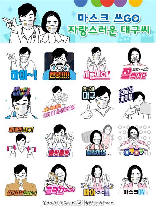 이에 대구시는 방역수칙 준수의 중요성을 공유하고 ‘마스크 쓰GO 운동’을 적극 홍보하기 위해 다양한 연령대에서 파급력이 크고 반응이 좋은 카카오톡 이모티콘을 제작해 배포한다.