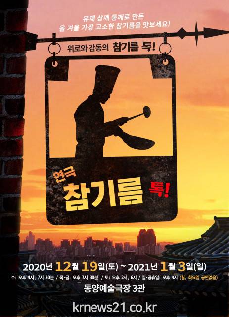 ‘유깨 상깨 통깨’로 만든 참기름 톡!은 올 겨울 가장 따뜻한 연극으로 관객들을 찾아갈 전망이다. 대학로 실력파 배우들인 이호성, 임일애, 정슬기, 정아미, 한록수, 박용, 한필수, 손지나가 출연한다.