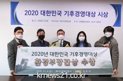 4일 김포시가 에너지경제신문사가 주관하는 ‘2020 대한민국 기후경영대상’ 환경부문 환경부장관상을 수상했다.