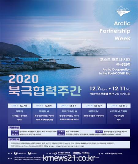 ▲ [사진=홍보포스터]부산시(시장 권한대행 변성완)가 내일(7일)부터 11일까지 진행되는 ‘2020 북극협력주간(Arctic Partnership Week 2020)’을 맞아 ‘부산 시민극지강좌’를 온라인으로 개최한다고 밝혔다.