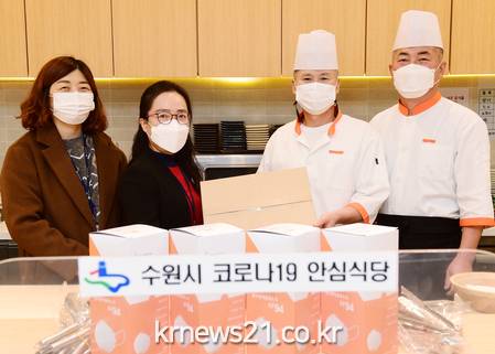 수원시는 11일까지 ‘코로나19 안심식당’으로 지정된 업소에 계산대 칸막이 1개, KF94 마스크 100매, 덜어 먹기 용 국자·집게 각 10개, 음식점 위생등급제 홍보물 5매 등 방역 물품 5종을 제공한다.