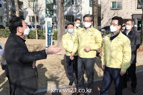 허태정 대전시장이 9일 오후 유성구 지역 주민 민원 현장과 관평동 행정복지센터, 신성동 마을공유공간에서 올해 마지막 현장시장실을 열고 시민과 소통의 시간을 가졌다.