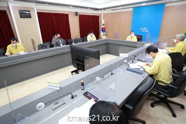 충북도는 9일 오후 4시 30분 도청 영상회의실에서 김장회 행정부지사 주재로 연말연시 도내 코로나19 확산 방지 대응을 위한 ‘사회적 거리두기 2단계 특별점검’ 추진 회의를 개최했다.