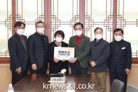 ▲ [사진제공 = 평택시](사)한국북큐레이터협회(회장 김미정)는 지난 11일 평택시청 대외협력실에서 코로나19로 학업이 어려운 청소년을 위해 동화책 3,000권을 기증했다.
