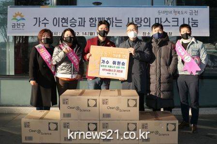 ▲ [사진제공 = 금천구]금천구(구청장 유성훈)는 12월 14일(월) 가수 이현승이 팬카페(동반자)회원들과 함께 지역 취약계층을 위해 KF94마스크 3,000장을 전달했다고 밝혔다.