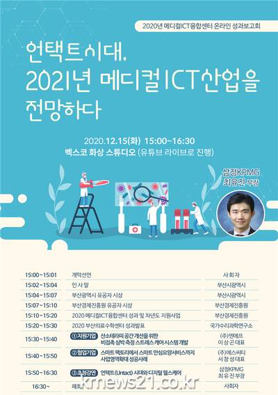 ▲ [사진=홍보포스터]부산시(시장 권한대행 변성완)는 부산경제진흥원과 함께 12월 15일 오후 3시부터 「2020년 메디컬ICT융합센터 성과보고회」를 온라인으로 개최한다고 밝혔다.