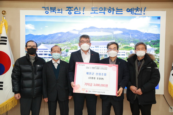 아울러, 예천군산림조합(조합장 조영환)에서도 16일 관내 저소득 주민들을 위해 써달라며 3백만 원 성금을 기탁해 힘든 시기를 보내고 있는 이웃들을 위한 성금이 봇물을 이루고 있다.