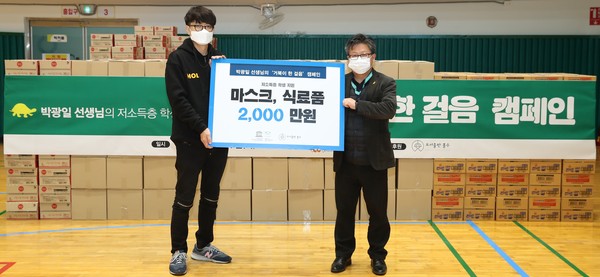 박광일 강사는 “가정 형편이 어려운 학생들에게 정성이 담긴 따뜻한 도시락을 제공할 계획이었으나 코로나 19 예방 차원에서 생필품으로 지원하게 됐다”면서 “앞으로도 굶는 학생들이 없도록 캠페인을 진행할 계획”이라고 말했다.