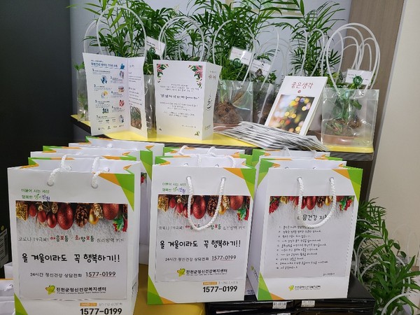 키트는 △심리방역리플렛 △마스크 △도서 △토피어리 △양말세트 등으로 구성됐으며 지난 14일부터 18일까지 5일간 전달했다.