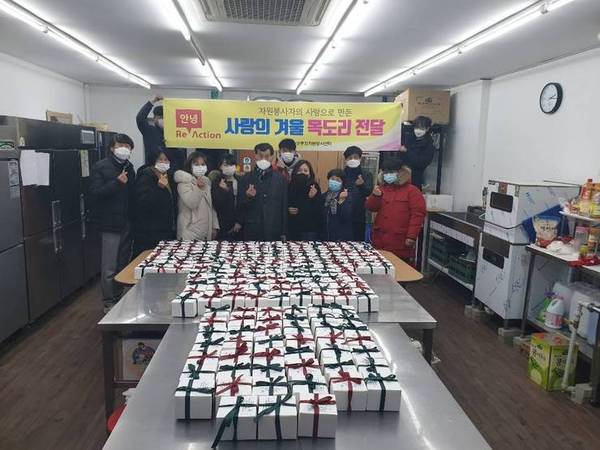 이번 목도리 봉사활동은 코로나19관련 사회적 거리두기 및 방역수칙을 준수하면서 자원봉사 안녕 캠페인의 일환인“안녕 리액션(ReAction)”을 접목시켜 주변의 어려운 이웃들이 따뜻한 겨울을 보내길 바라는 마음으로 20명의 자원봉사자들이 참여하였으며 300개의 목도리를 만들어 배부하였습니다.