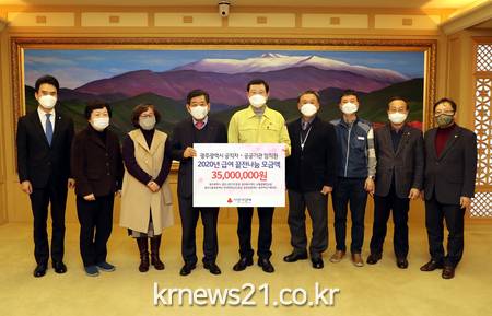 이번 성금은 광주시가 공공영역부터 사회공헌문화를 확산시키기 위해 지난 2월부터 나눔에 동참하길 희망하는 공직자와 공공기관 임직원이 함께 실시한 ‘급여 끝전나눔’을 통해 마련됐다.
