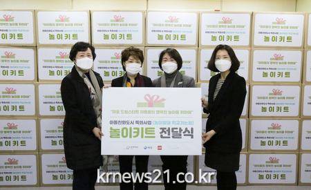 아동친화도시 특화사업 ‘놀이찾아 학교가는 길’의 하나로 진행된 이번 키트 전달을 위해 굿네이버스, 애경산업, 레고코리아, 디자인벗 등 지역사회 유관기관의 후원 및 협찬을 통해 ‘아동권리옹호네트워크’가 구축됐으며, 과학놀이 에어로켓, 미니블럭, 발목줄넘기 등 아동의 건강한 성장‧발달에 도움이 되는 약 15개 놀이도구가 담긴 놀이키트 250개가 마련됐다.