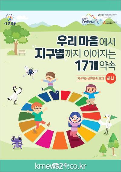 ▲ [사진=홍보포스터]도봉구(이동진 구청장)는 서울시 자치구 최초로 지속가능발전교육(ESD) 교재인 ‘우리 마을에서 지구별까지 이어지는 17개 약속’ 2종을 발간하였다.