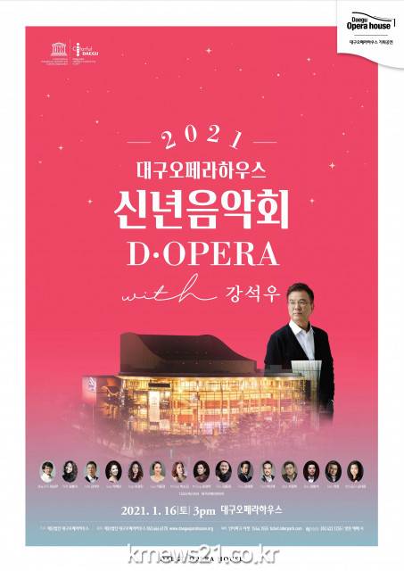 ▲ [사진=홍보포스터]재단법인 대구오페라하우스(대표 박인건)가 1월 16일 오후 3시 ‘2021 신년음악회 - D·Opera with 강석우’(이하 ‘2021 신년음악회’)를 무대에 올린다. 재단의 새해 첫 공연인 동시에 객석의 관객들과 함께하는 지역의 첫 대면 공연이다.