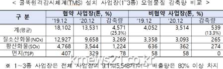 이번 감축은 324개 사업장 중 굴뚝원격감시체계(TMS)가 설치된 137개 대량배출 사업장(1~3종)에 대한 12월 배출량 분석 결과이다.