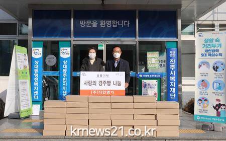 하회은 대표는 “신축년 새해를 맞이하여 주변의 소외된 분들에게 도움이 되고자 기부를 하게 되었다”며 “이번 나눔을 계기로 진주시복지재단과 함께 나눔을 실천할 수 있는 다양한 활동을 모색하겠다”고 밝혔다.