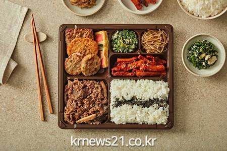 이번에 선보이는 ‘새해복많이받으소’ 도시락은 푸짐한 설 한상 차림 콘셉트로 기획됐다. 모둠버섯소불고기·모둠전(4종)·우엉잡채·두부시금치버무리 등 명절 대표 음식 7종과 매콤오징어볶음으로 구성됐다. 총 8찬 도시락으로 완성된 것이다.