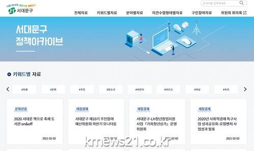 ▲ [이미지제공 = 서대문구]서대문구가 지역에 관한 각종 자료를 망라해 보관하는 ‘서대문구 정책 아카이브(archive)’를 최근 구 홈페이지 내에 개소했다.