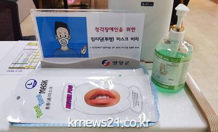 이에 영양군은 민원실을 방문하는 청각장애인과 창구담당직원이 서로 입모양을 보며 의사소통할 수 있는 립리딩 투명마스크를 구입·비치하여 민원편의를 도모하였다.