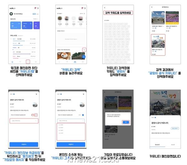 참여를 원하는 사람은 모바일 앱 워크온을 설치 후 광양시 공식커뮤니티(소그룹 읍면동 선택)에