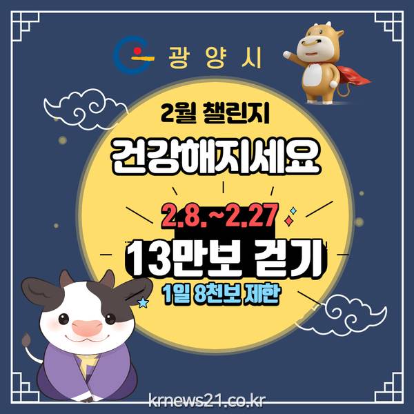 개선하기 위해 작년 2월 광양시 공식 걷기 커뮤니티를 개설해 월 1회 걷기 챌린지를