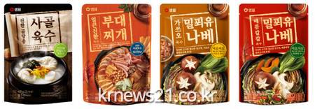 샘표는 △양질의 사골을 전통 방식으로 푹 고아낸 ‘진한 곰탕용 사골육수’ △사골육수에 비법 양념을 더한 ‘얼큰진한 부대찌개 육수’ △가쓰오 풍미가 매력적인 ‘밀푀유나베 육수’ 2종까지 총 4종을 선보이며 육수 라인업을 강화했다.