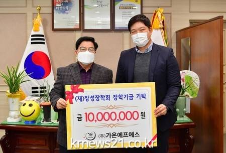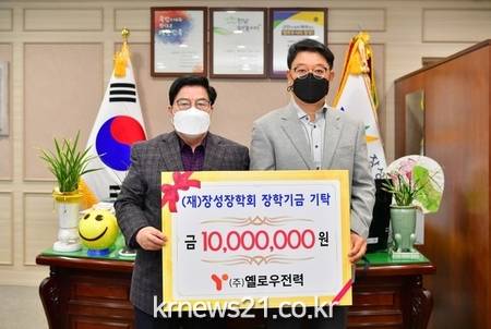 장학회에 따르면 ㈜옐로우전력과 ㈜가온에프에스가 장성군청에서 열린 기탁식을 통해 각각 1000만원의 장학금을 쾌척했다.