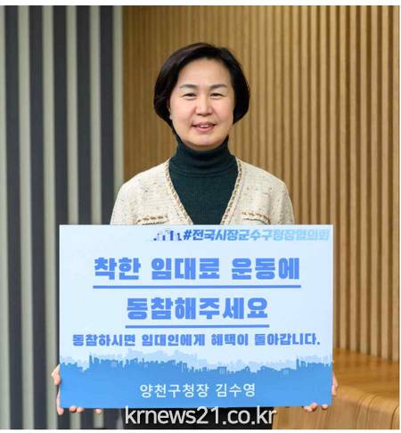 김수영 양천구청장은 “코로나 19의 장기화로 소상공인들의 임대료 부담이 가중되고 있는 상황에서, 착한 임대인 사업이 널리 확산하여 임대인과 임차인의 자발적인 상생이 이루어지길 바란다.”라고 전했다.