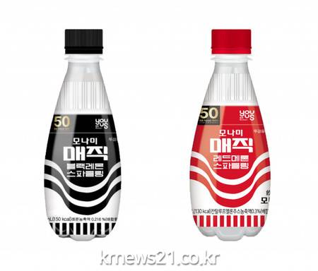 양사는 ‘모나미매직’ 외형의 특징을 살린 음료병을 자체 제작한 후 모나미매직의 고유 디자인을 음료 패키지에 그대로 적용했다. 또 검은색, 빨간색 내용물로 음료를 각각 구성하는 방식으로 매직의 잉크 색상까지 완벽하게 표현함으로써 마치 대형 모나미 매직이 새롭게 출시된 듯한 착각을 일으킬 정도로 ‘모나미매직스파클링’을 실감 나게 구현해냈다. 가격은 각각 1300원이다.