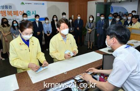 한편, 대구시는 지난해 5월 대구행복페이 이용 활성화를 위해 교육청, 8개 구‧군, 공사‧공단, 출자출연기관, 이전공공기관 등 지역 내 38개 유관기관과 MOU를 체결한 바 있다. 올해도 DGB대구은행 10억원, 대구도시철도공사 2.6억원 기관 구매로 지역상생 정신 실천을 위해 힘쓰고 있다.