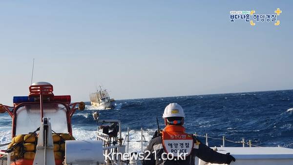 다음날 21일경 기상호전 되어 경비함정이 안전해역까지 예인 후 추진기에 걸려있는 어망제거 후