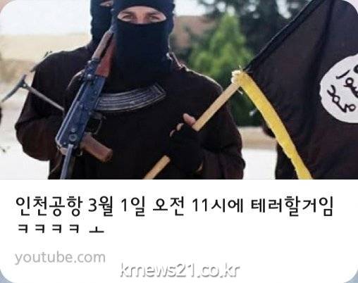 ▲ [유튜브 영상 캡처]3·1절을 맞아 인천국제공항을 테러하겠다는 내용의 협박성 유튜브 영상이 게시돼 경찰이 수사에 나섰다.