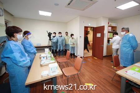 지난 25일 오후 1시 10분 코로나19 백신인 아스트라제네카 수급을 완료하고 경도요양병원을 시작으로 관내 요양병원 1개소, 요양시설 5개소 420명 중 예방접종에 동의한 392명을 접종한다.