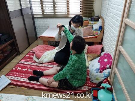 찾아가는 재활운동교실은 코로나로 가정내 고립된 재가 장애인에 대하여 대면을 최소화한 건강관리방안으로 대상자 가정으로 직접 방문하는 일대일 맞춤형 교육으로 진행한다.