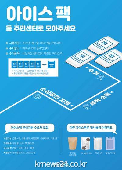 마포구(구청장 유동균)는 신종 코로나바이러스 감염증(코로나19)의 영향으로 온라인 쇼핑 거래가 증가하자 이와 함께 늘어나고 있는 아이스팩 처리문제를 해결하기 위해 아이스팩 재활용 사업에 나섰다.
