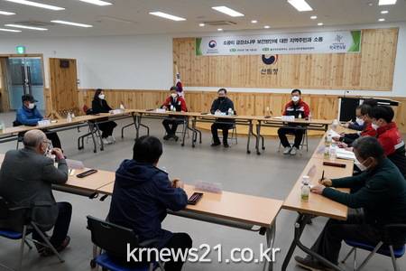 ▲ [사진제공 = 산림청]최병암 산림청 차장은 5일 산림유전자원보호구역으로 지정 관리하는 울진 소광리 일원 금강소나무 군락지를 찾아 금강소나무 보전에 힘을 모으고자 ‘울진 소광리 산림생태관리센터에서 직원 및 지역주민들과 소통의 시간을 가졌다.