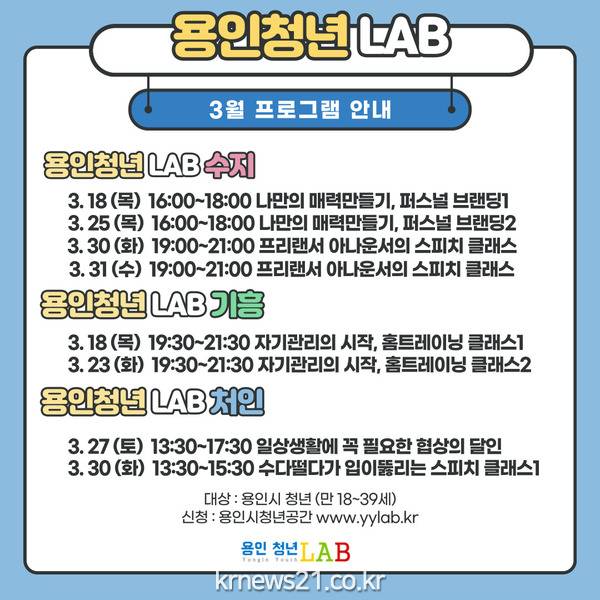 자세한 내용은 용인 청년 LAB 홈페이지에서 확인하면 된다.