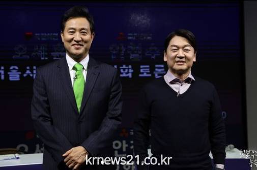 이날 토론회장에 마주앉은 오 후보와 안 후보는 유·무선 전화 포함 여부와 경쟁력·적합도 문항을 놓고 서로 절충안을 주고 받았지만 입장차를 좁히지 못하고 토론을 마쳤다.
