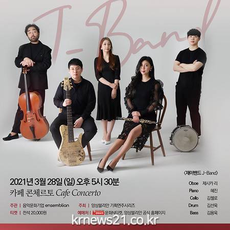 콘서트를 주관하는 앙상블리안 심은별 대표는 “제이밴드는 음악 전공자들에게 새로운 방향성을 제시할 수 있는 팀이라고 생각한다. 국내 유일의 팝 오보이스트 제시카 리를 비롯해 멤버들의 신선한 색깔이 관객에게 선물이 될 것이라 확신한다”고 말했다.