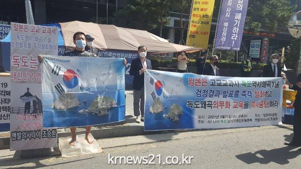 알리기 위해 ‘일본은 고교 교과서 독도역사 왜곡 기술 검정발표를 즉각 철회하라!