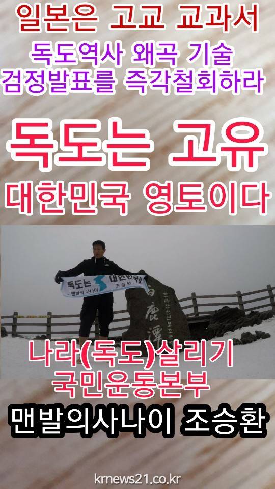 우리의 대한민국 독도를 일본정부에서 고유 일본땅이라고 왜곡함을 규탄한다.