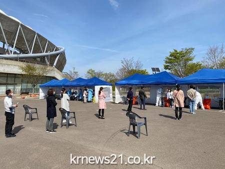 ▲ [사진제공 = 진주시]진주시는 4월 1일부터 3일 동안 진주종합경기장에 선별진료소를 설치해 전체 어린이집 244개소의 보육교직원 2,443명에 대해 코로나19 선제검사를 실시한다고 밝혔다.
