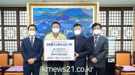 기탁한 성금은 지역연계 모금 사업인 “살고 싶은 통영 행복펀드”로 적립하여 통영시 관내의 복지사각지대에 있는 어려운 계층의 복지증진을 위한 사업에 사용할 계획이다.