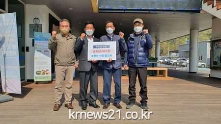 ▲ [사진제공 = 양평시]오늘 오전(15일), 옥천면 이장협의회(협의회장 정재국)는 면사무소를 방문해 ‘옥처니 냉장고’ 운영에 사용해 달라며 후원금 50만원을 전달했다.