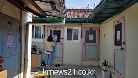 ▲ [사진제공 = 양평군]양평읍 찾아가는 복지팀은 코로나-19의 장기화가 지속되면서 복지사각지대 발굴을 위해 장기투숙객과 기초생활수급자가 밀집되어 있는 쪽방촌, 여관, 모텔 등 87개소를 방문하며, 복지사각지대 발굴을 위한 상담 및 홍보를 하고 있다.