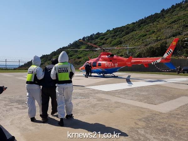 보호자를 구급차에 탑승 시켜 헬기장에 대기중인 소방헬기에 탑승 후 순천 소재 병원으로 긴급