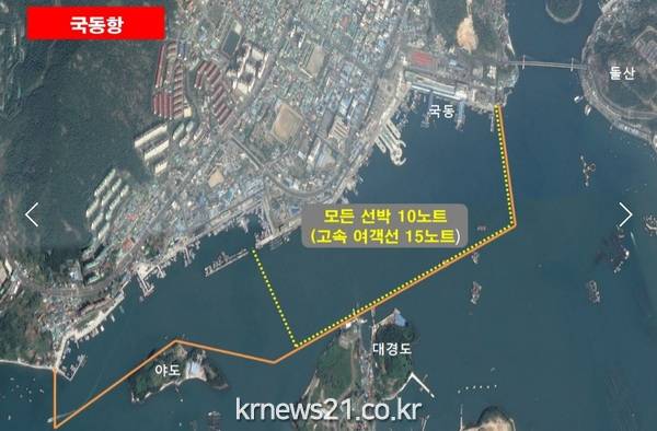 여수해경에 따르면 여수 국동항 일원 해상은 최고속력 제한 고시에 따라 고속여객선