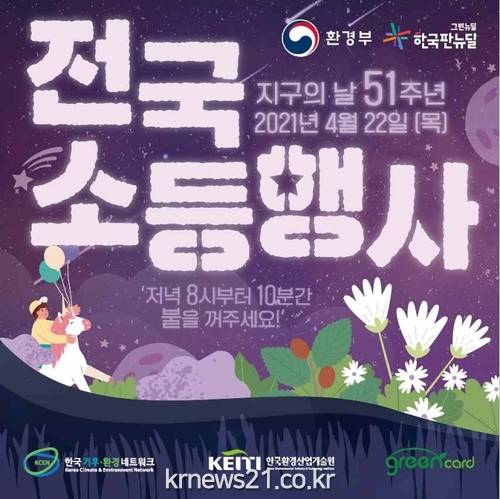 지구의 날은 1969년 미국에서 발생한 해상 원유 유출 사고를 계기로 시작된 세계기념일로 올해는 51주년이 된다. 이날 공공건물, 주요 상징물을 중심으로 전국 동시 소등 행사가 진행된다.