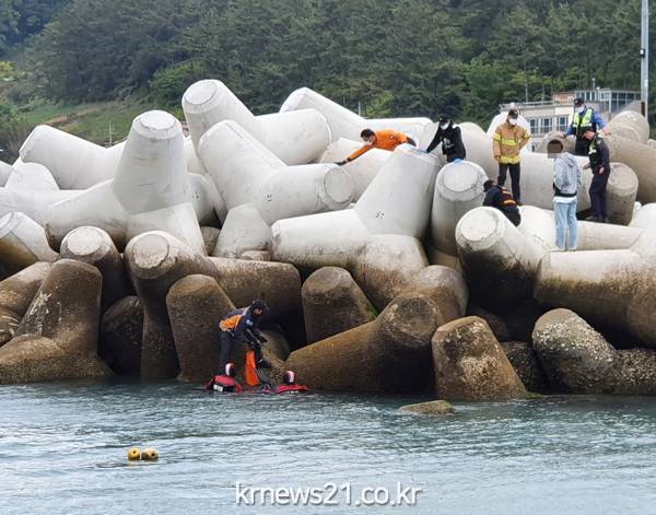 여수해경에 따르면 지난 1일 오후 5시 28분께 여수시 돌산읍 죽포리 방죽포항 테트라포드