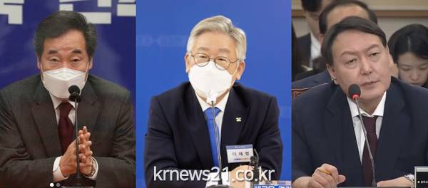 ▲ [사진출처 = 이낙연 대표 인스타그램/이재명 지사 인스타그램/JTBC 뉴스 캡처]차기 대선주자 지지율 조사에서 윤석열 전 검찰총장이 32%를 기록하며 두 달째 선두를 유지하고 있다는 여론조사 결과가 나왔다. 2위인 이재명 경기지사와 격차는 한 자릿수대로 좁혀졌다.